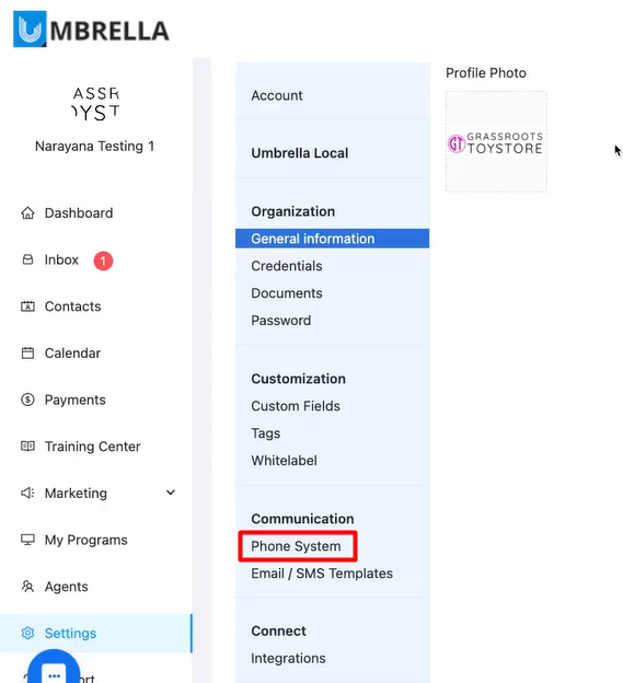 Under the "Communication" section (you might need to scroll down), click on Phone System.