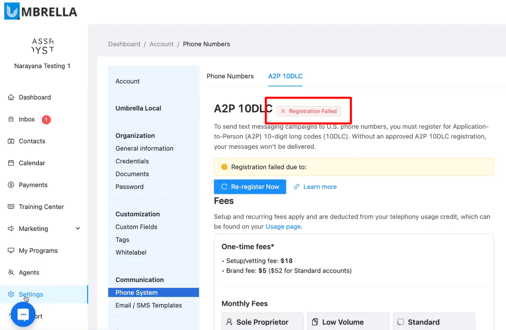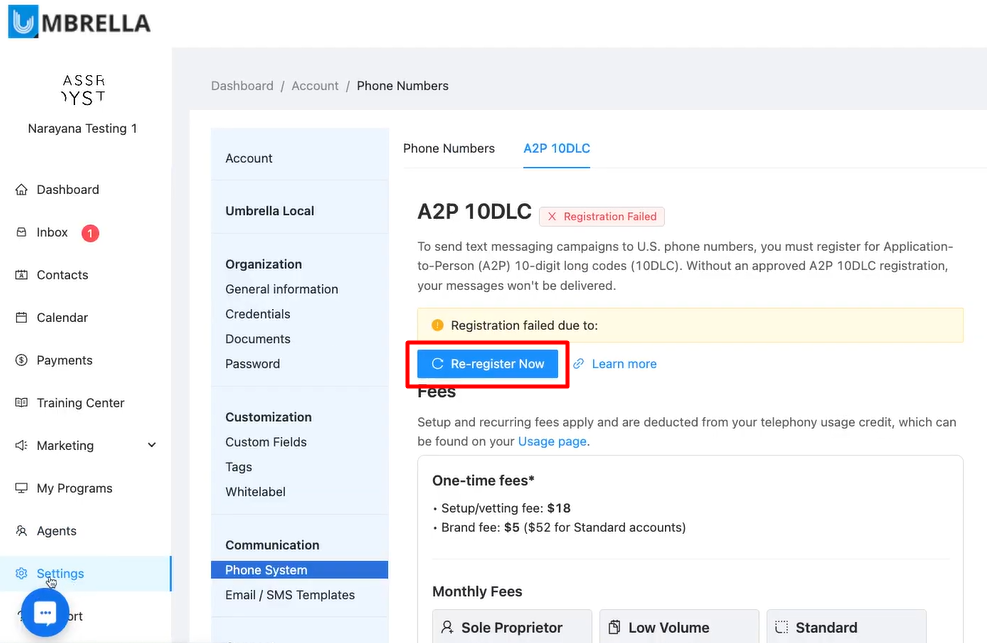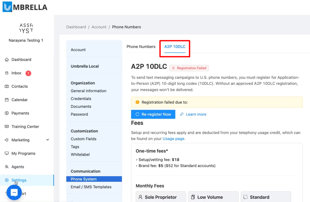 Understand why A2P 10DLC registration is mandatory for sending SMS messages to US phone numbers using Umbrella. This guide explains what A2P 10DLC is, why it's required by carriers, and how to initiate the registration process from your account settings.