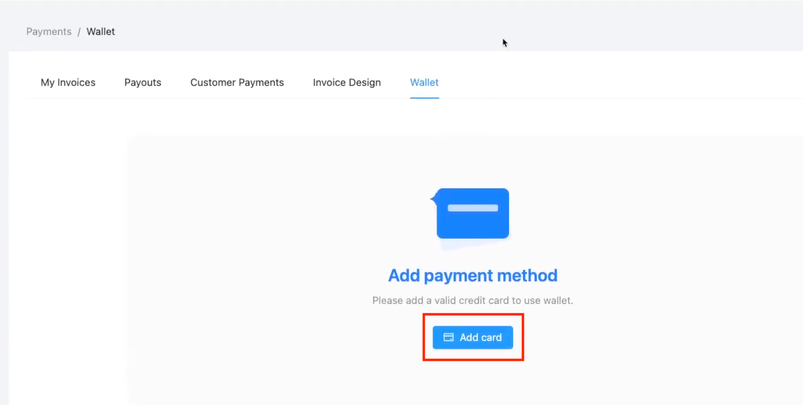 If you go to Payments > Wallet and see a prompt saying "Add payment method," you need to add a card first.