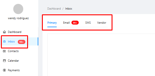 Primary: This is your main, consolidated view, displaying all email and SMS conversations you've had with your contacts in a single chronological feed.
