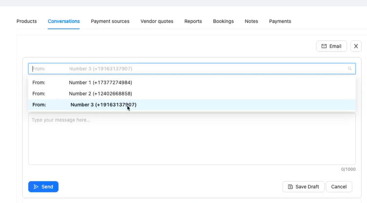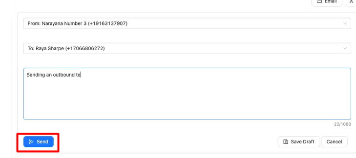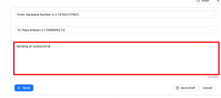 If you have multiple phone numbers associated with your account, you can click the dropdown in the "From" field to select which number to use. Often, your primary number will be selected by default.