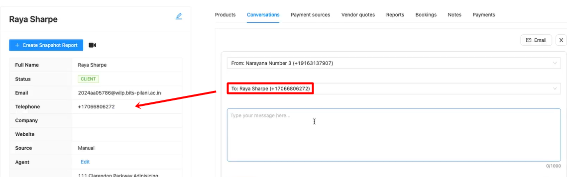 Incoming Message Notification: When a contact sends an SMS message to the phone number you used to contact them, it will appear in their conversation history.