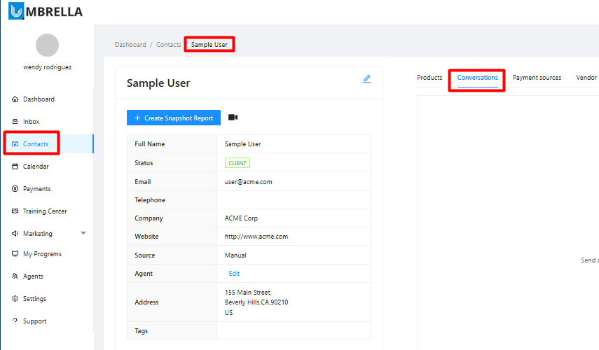 Navigate to the Contact's Conversations: