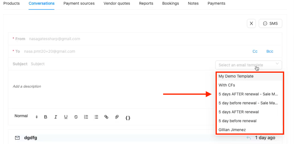 Click the Select an email template dropdown menu.