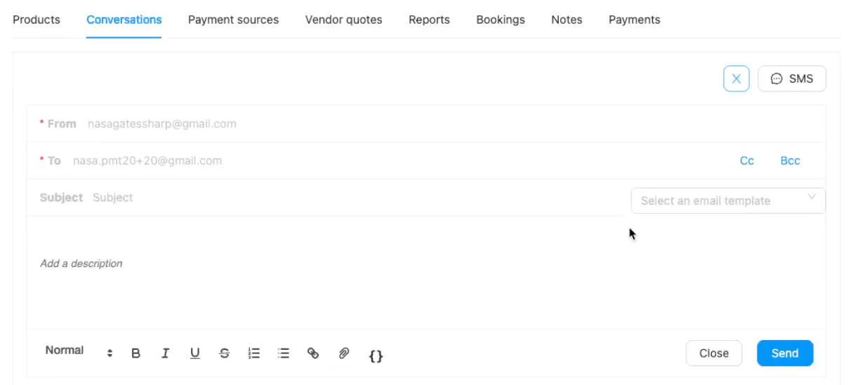 Within the contact's record, click on the Conversations tab. This tab displays the history of emails and SMS messages exchanged with this contact.