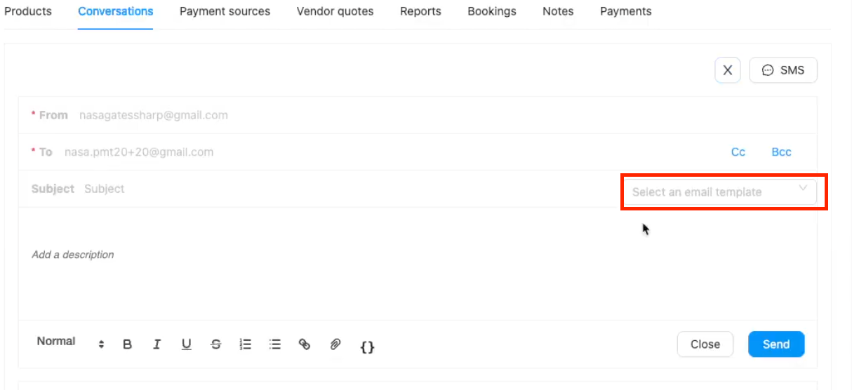 Selecting a template will automatically populate the Subject and the Body Content with the template's text.