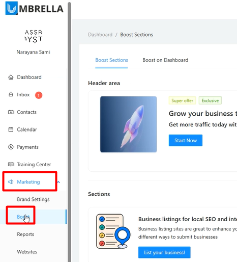 Umbrella's "Boost" feature is a dynamic and highly customizable Content Management System (CMS) designed to empower you to directly market your services and special offers to your clients within their HubOne portal. Think of it as your dedicated promotional canvas, strategically placed to capture client attention and drive upsells.
