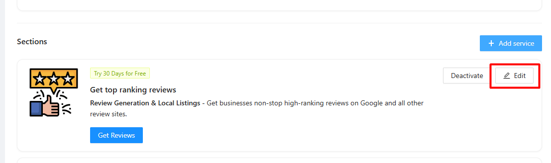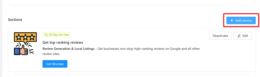 To Add a New Section: Click the + Add Service button