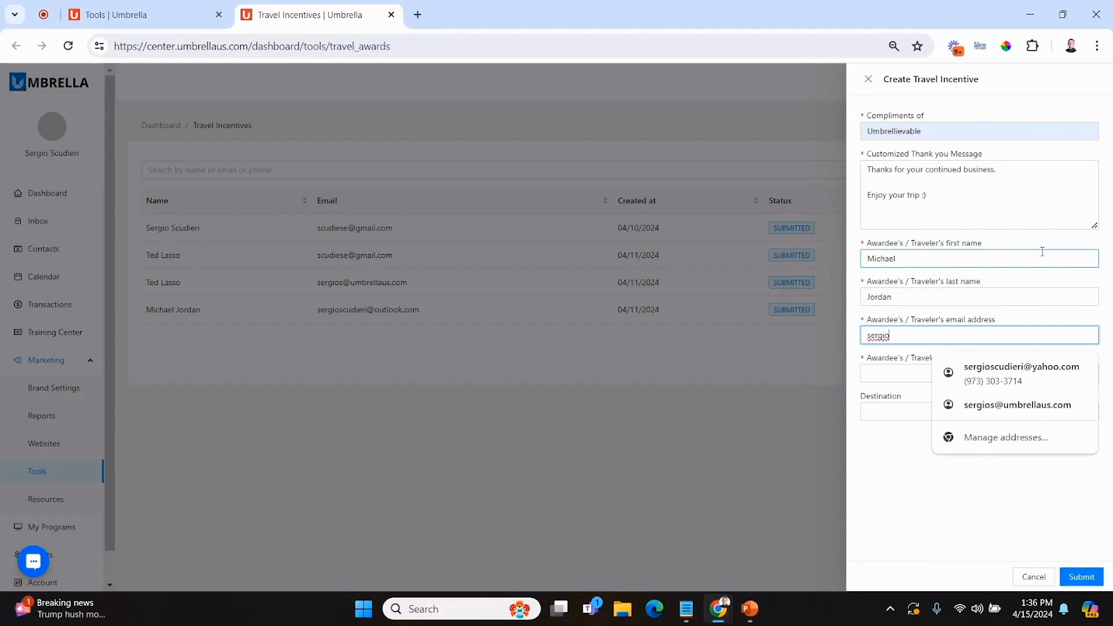 Finish by submitting the incentive. Now, your partner knows exactly who’s eligible and for which trip.