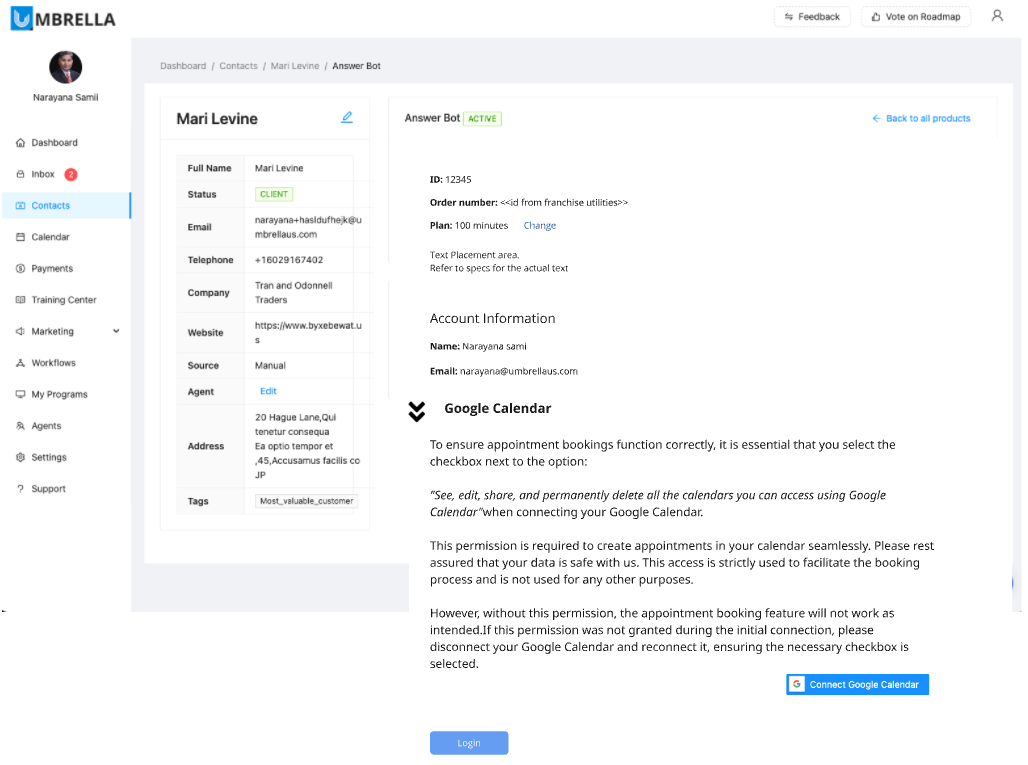 Connect your Google Calendar for the agent to book apppointments directly