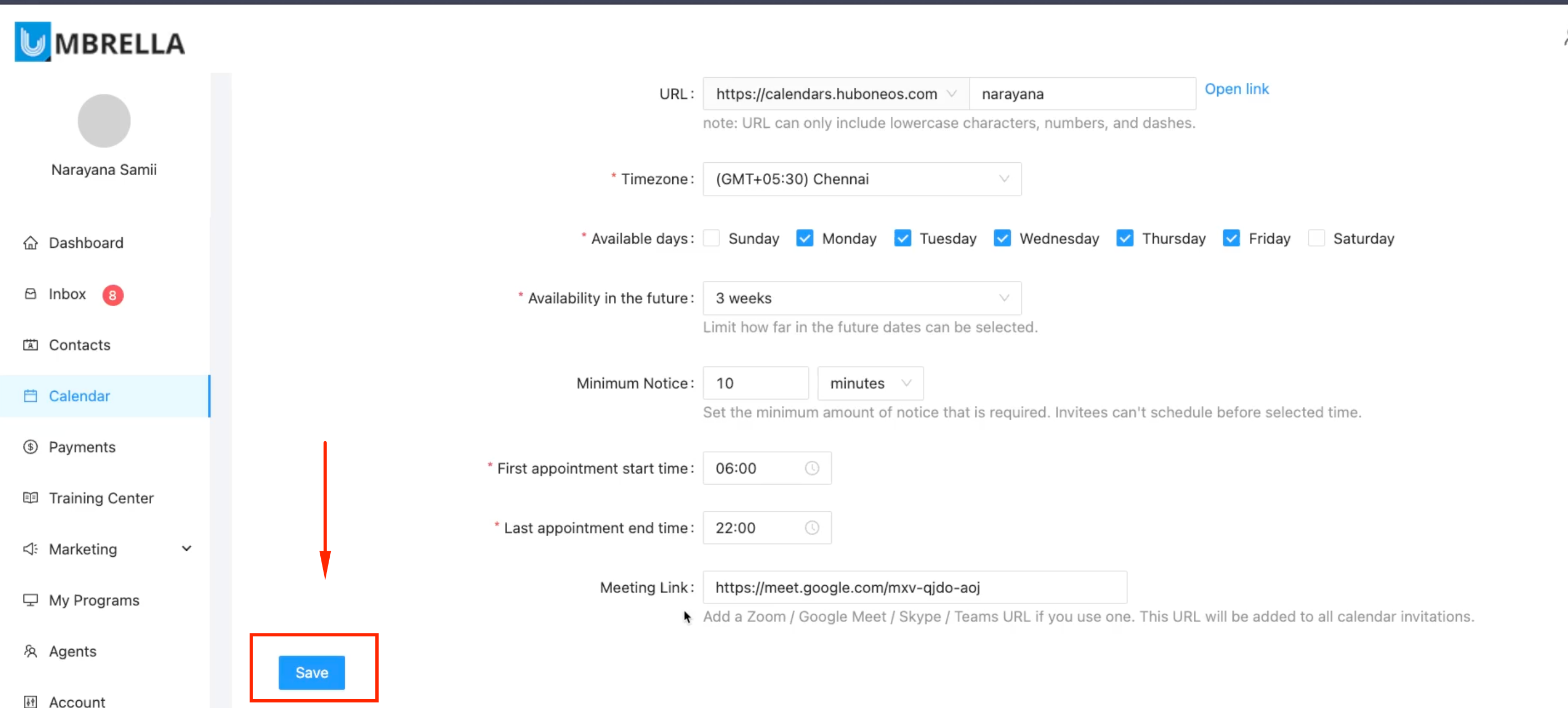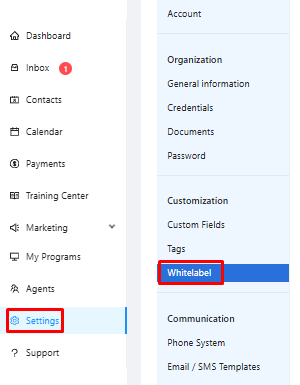 To customize your calendar URL navigate to White-Label Settings inside your Umbrella Dashboard: