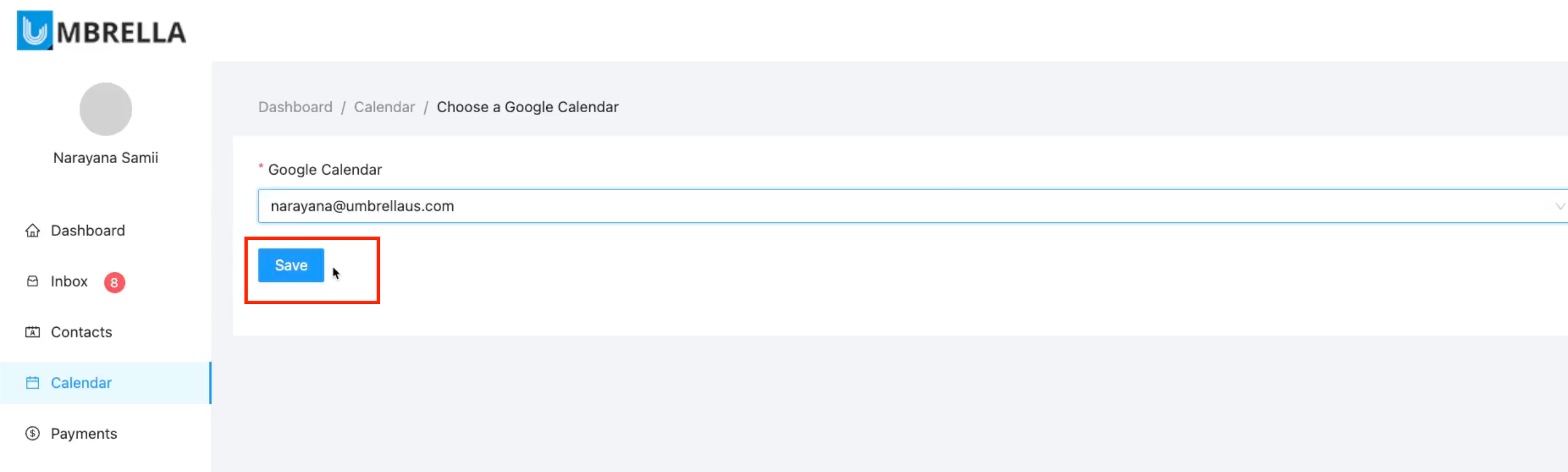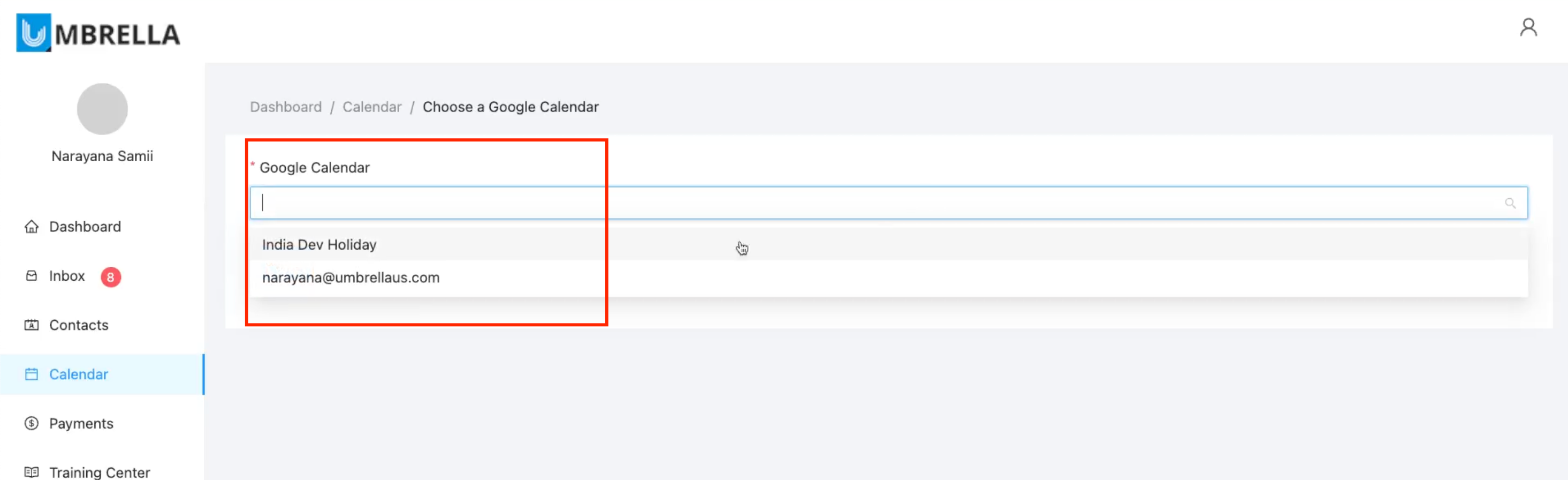 Choose the specific Google Calendar you want to sync from the dropdown.