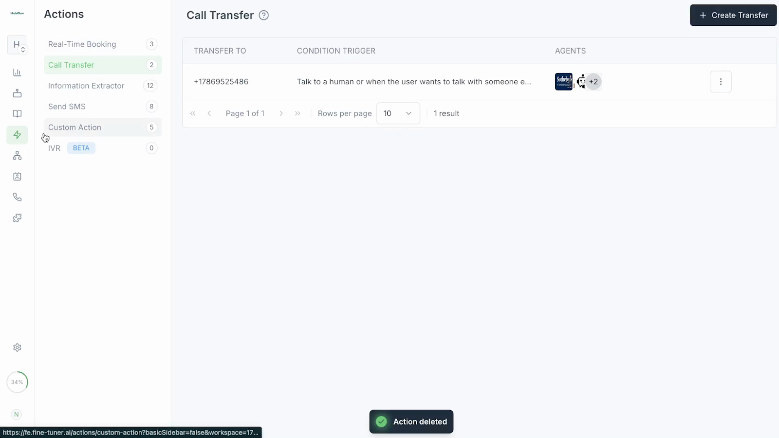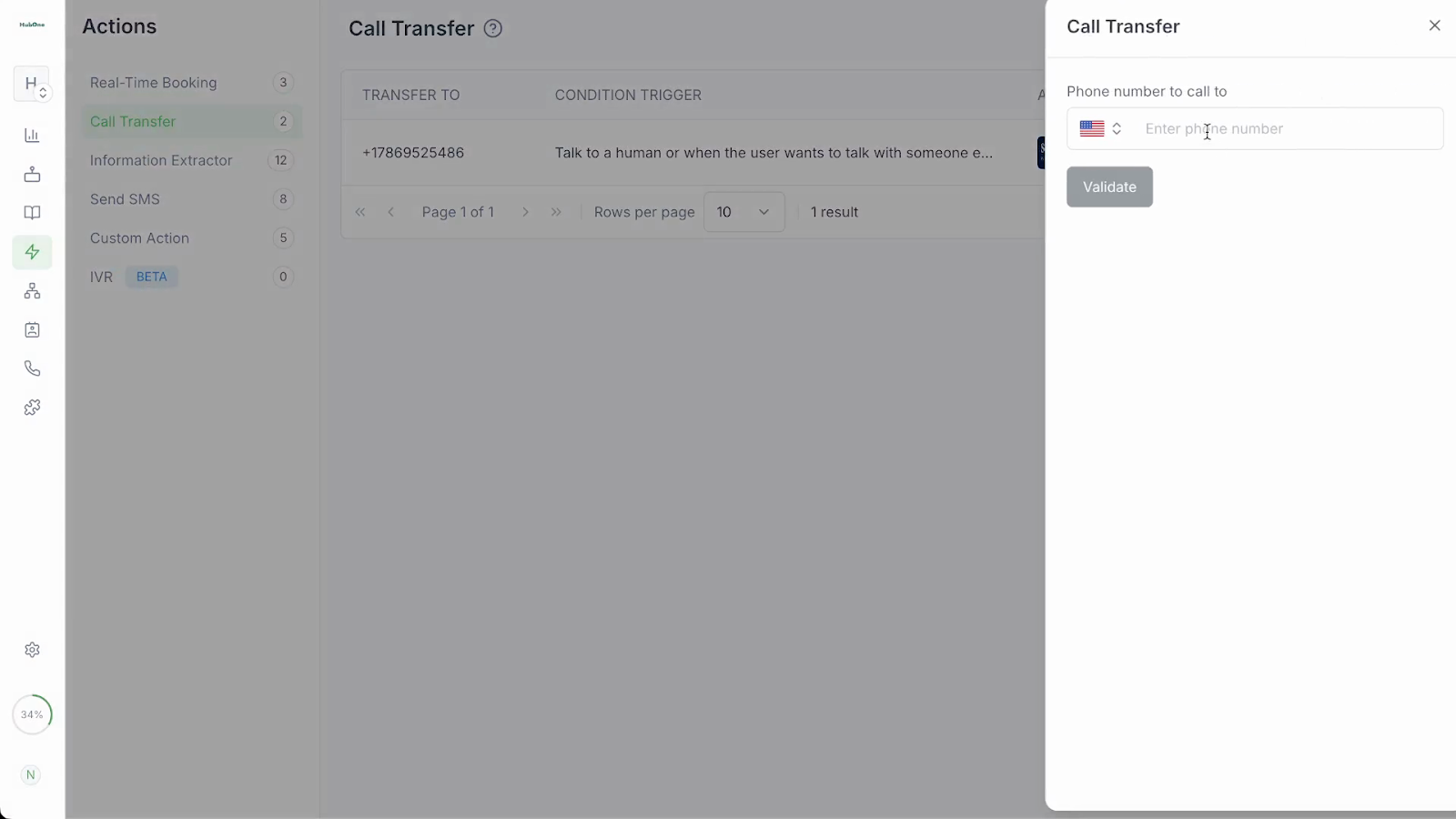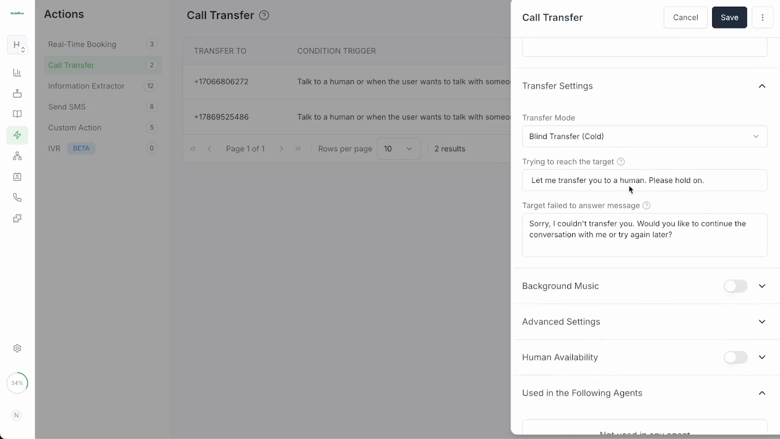 Assign the call transfer action to an agent. Open the desired agent’s profile and inside During The Call, select your desired transfer action.