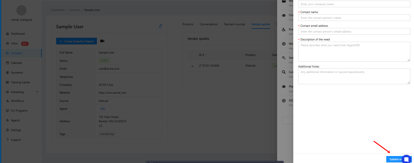 After entering all required details, click Submit Request.