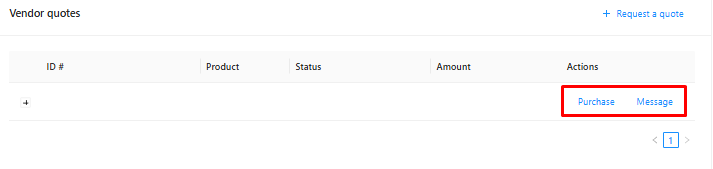 Once the vendor has reviewed your request and provided a price, the quote's status will update to SUBMITTED. You will see the final quote amount and two action buttons: Purchase and Message.