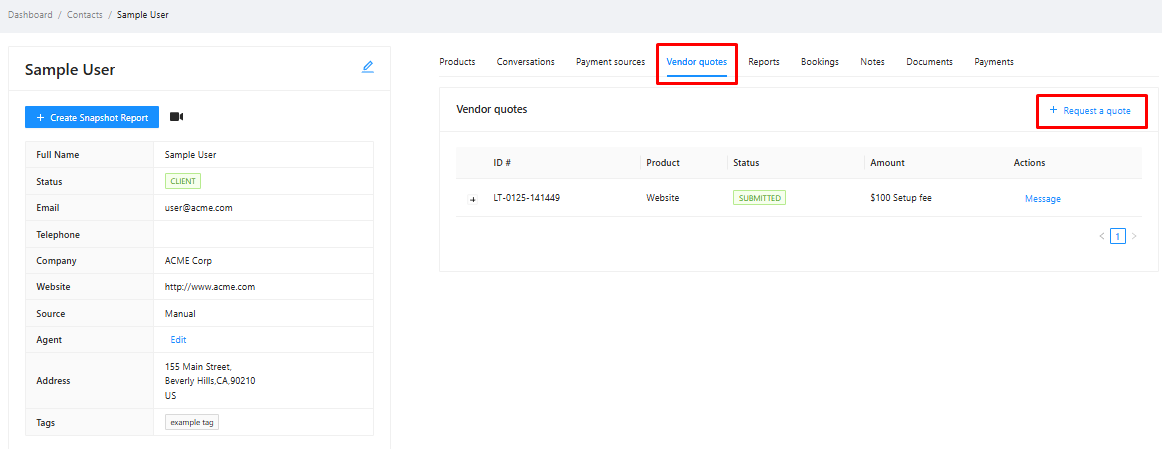 The quote will now appear in the Vendor quotes list with a status of REQUESTED. Quotes are typically processed within 3-5 business days.