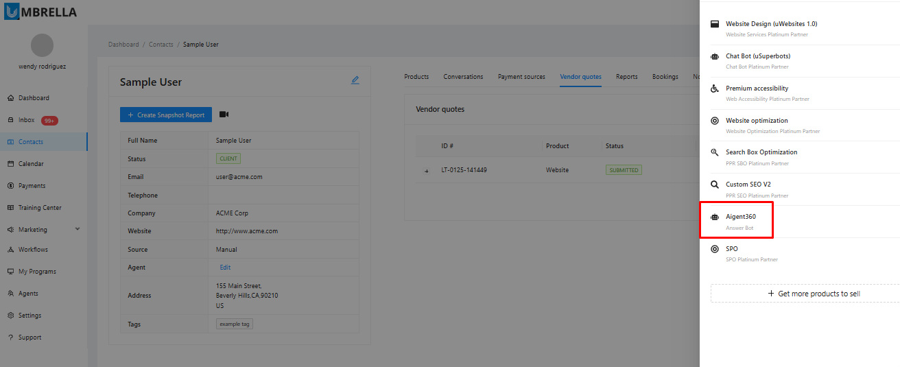 From the list of available products that appears, select AIgent360.