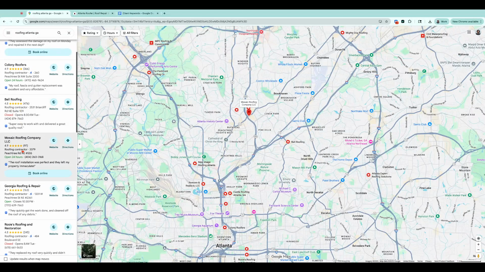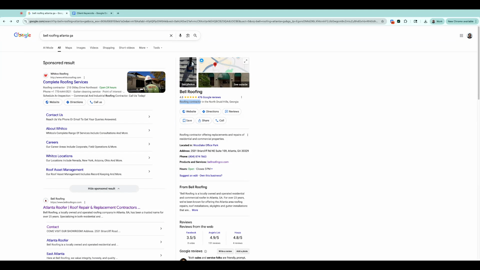 Search the service plus the location (e.g., “Roofing Atlanta”). Check that top-ranking businesses use the same primary category. If so, it’s a valid keyword.