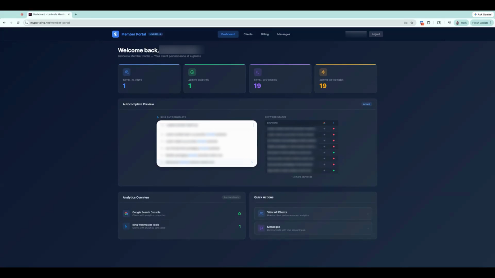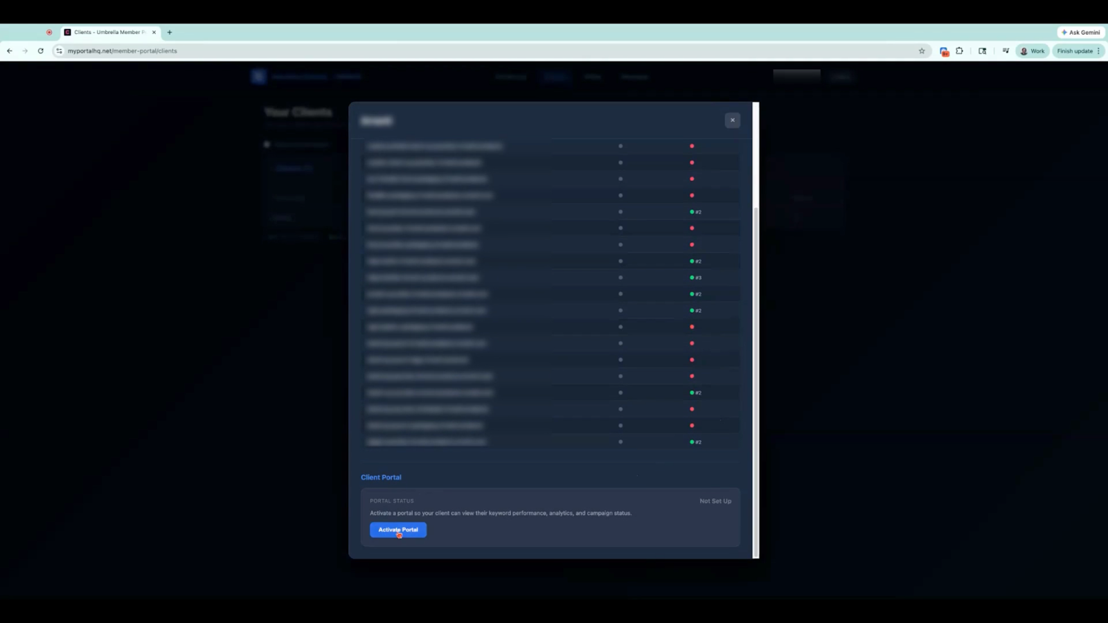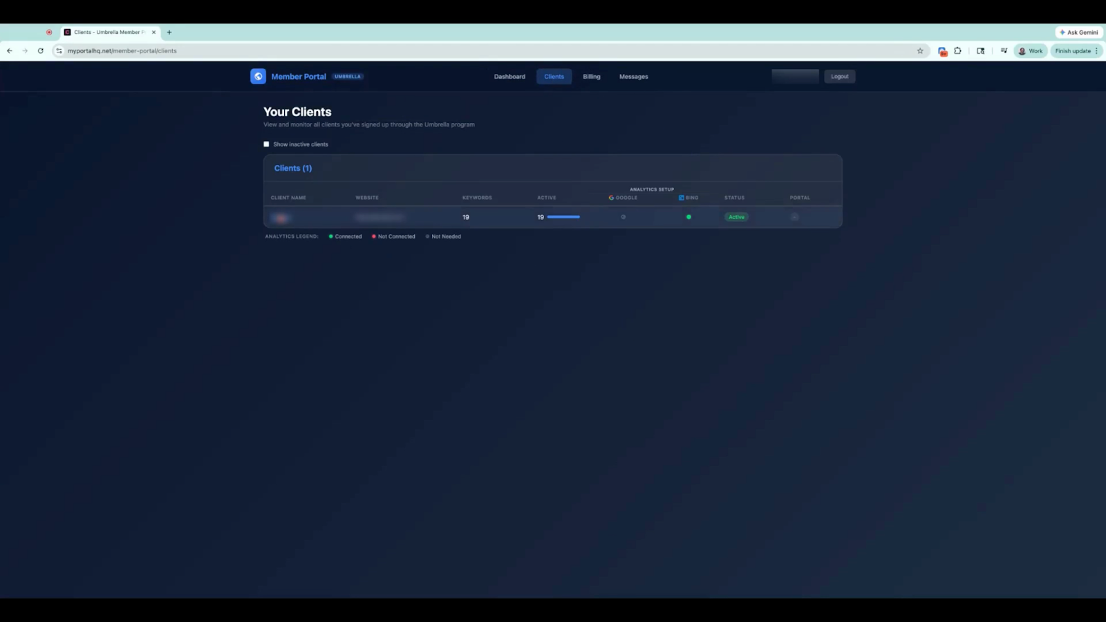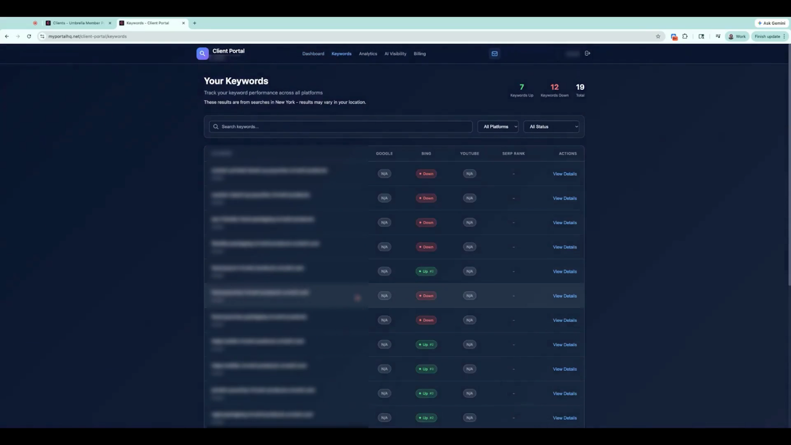 Both members and clients can monitor keyword activity directly within the portal.