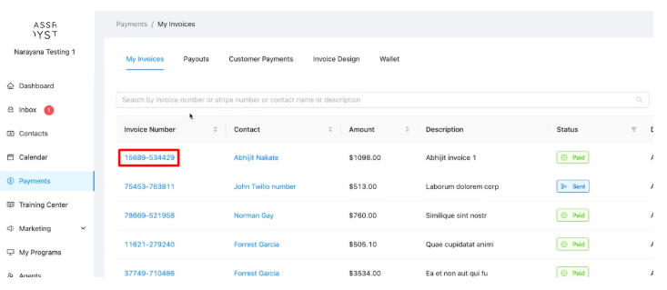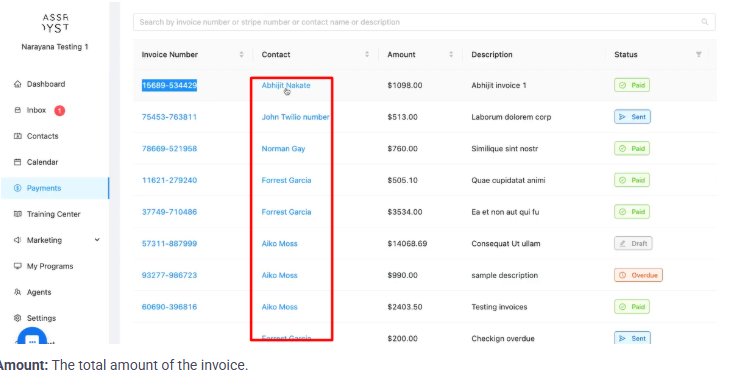 Understanding the Invoice List: The table displays key information: