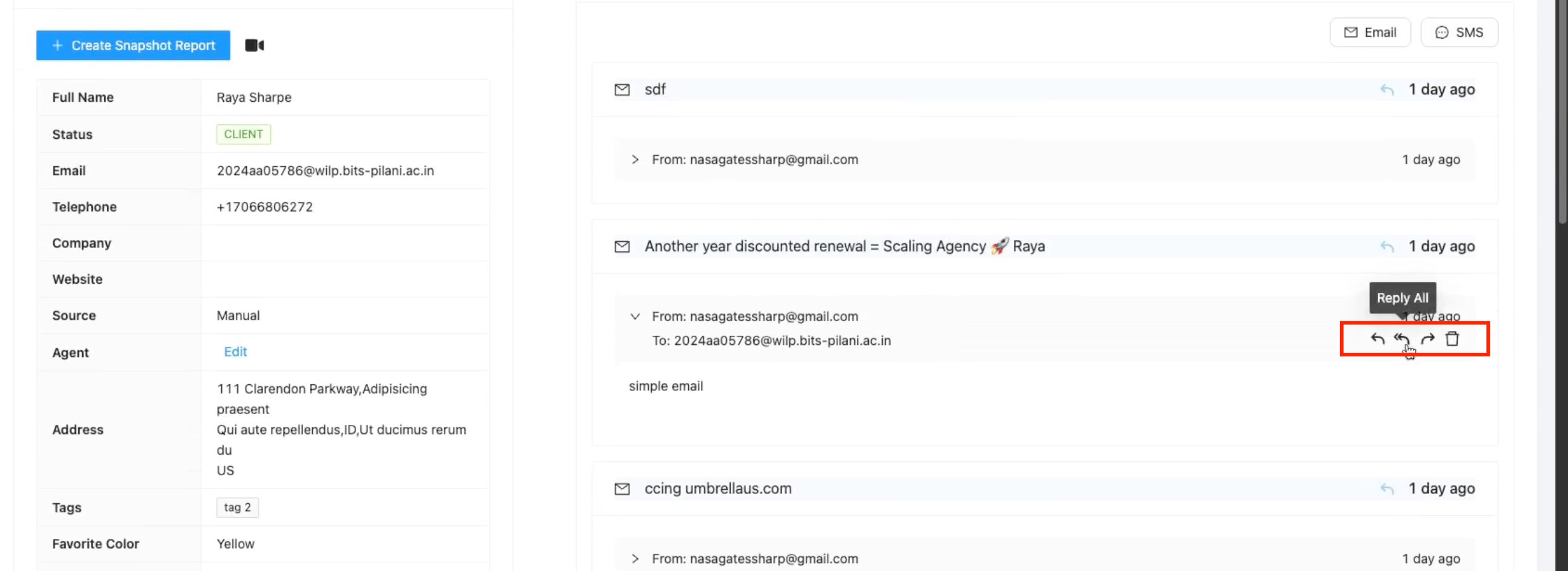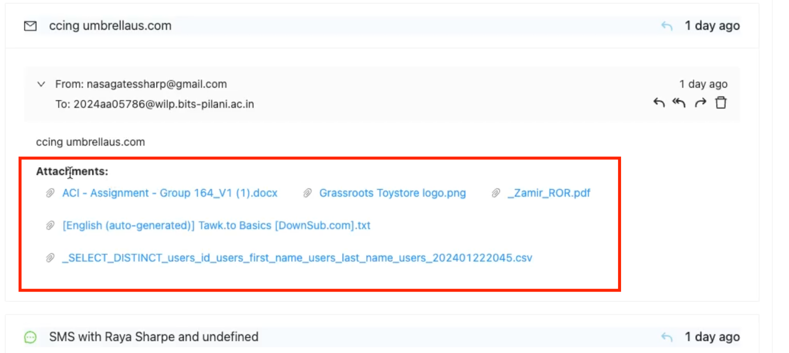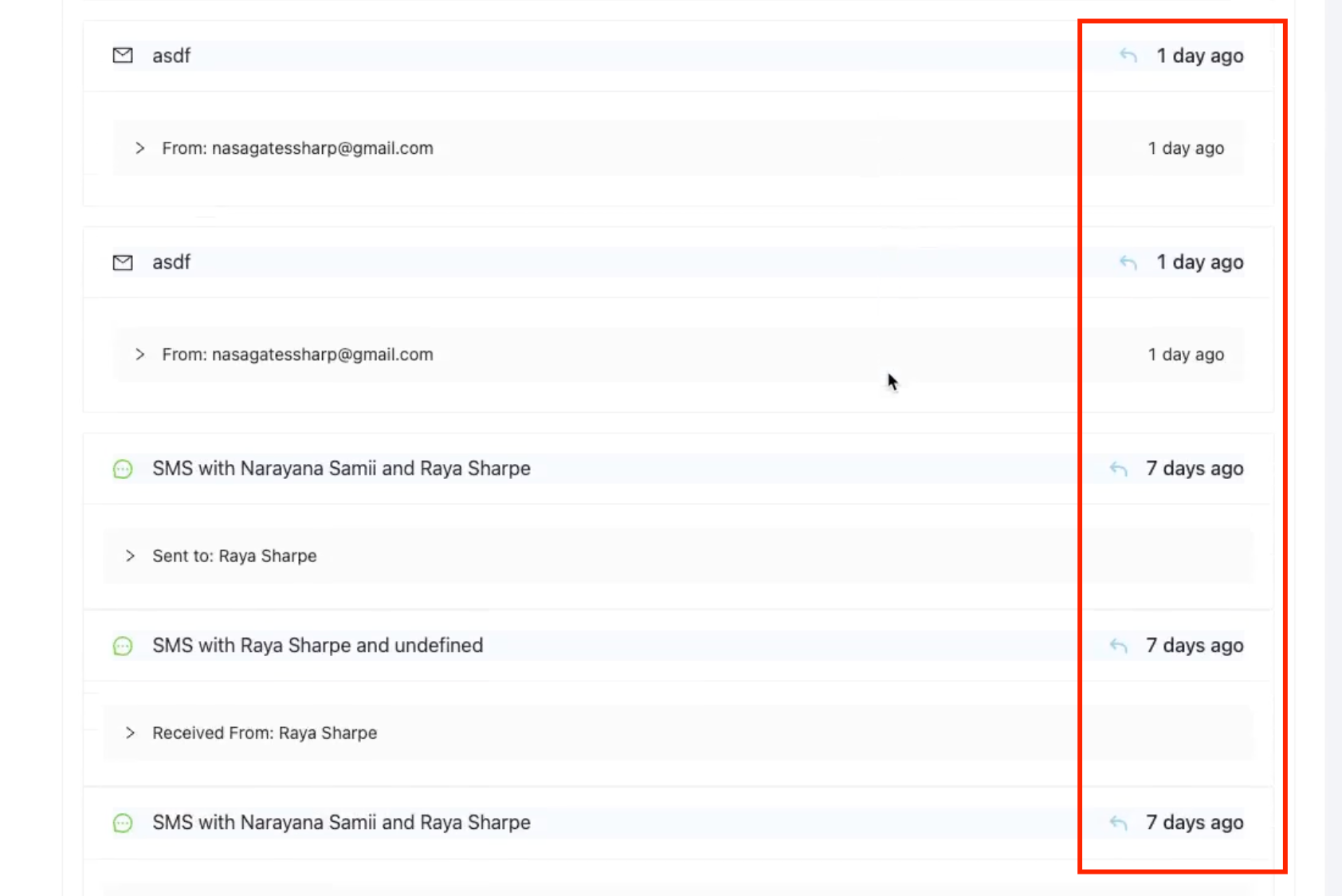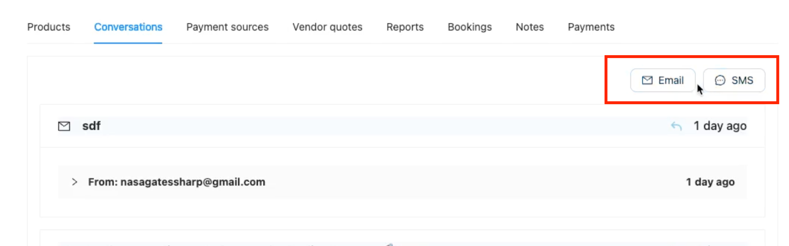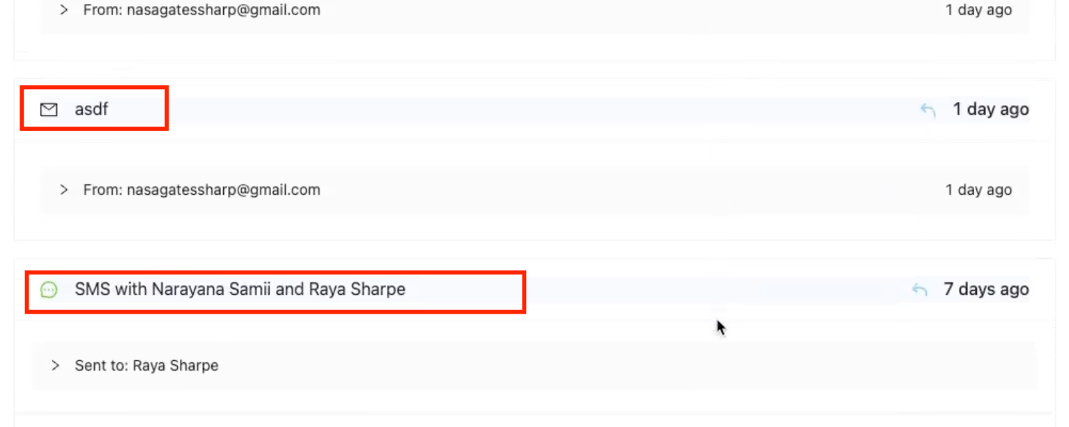 Click on any message thread (Email or SMS) in the list to expand it and view its content.