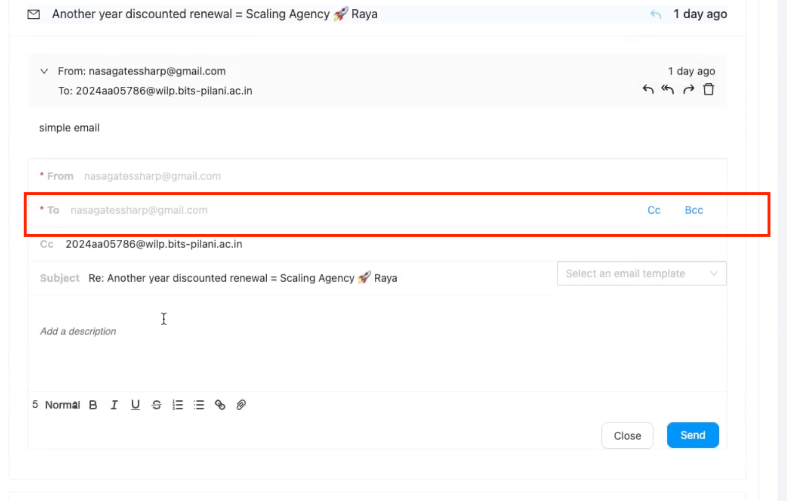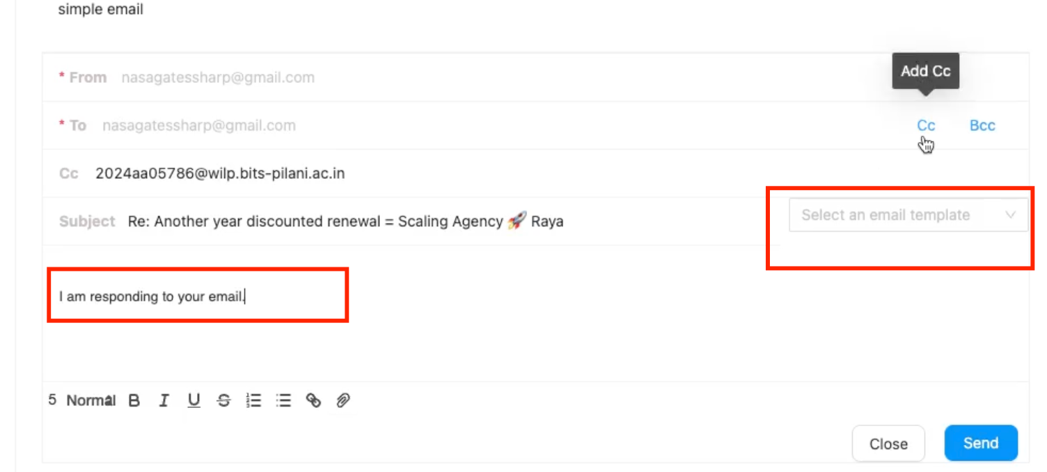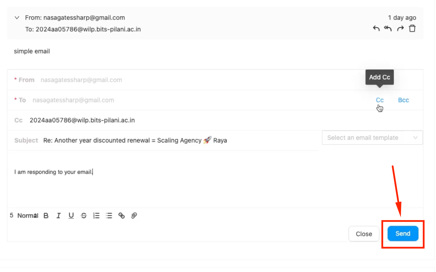 (Optional) Add recipients to the Cc or Bcc fields if needed.