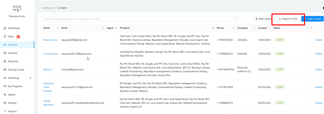 Export a filtered list: If you have searched or applied a filter, clicking the button will export only the contacts currently displayed on your screen.